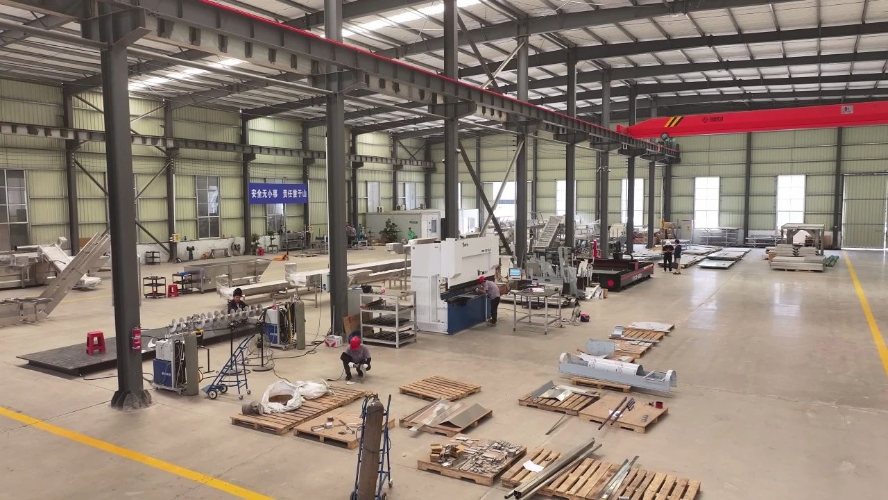 “我們主要生產(chǎn)食品機(jī)械深加工設(shè)備前處理段,涵蓋輸送、清洗、提升三大類產(chǎn)品?!鄙a(chǎn)廠長(zhǎng)徐眾奎表示,項(xiàng)目采用304食品級(jí)不銹鋼板材及管材,經(jīng)激光切割、折彎、焊接、表面處理等工序,將鈑金件與框架件組裝成刮板提升機(jī)、毛刷清洗機(jī)等核心設(shè)備。目前,車間已形成年產(chǎn)10萬(wàn)噸不銹鋼制品的加工能力,其產(chǎn)品殼體可直接應(yīng)用于陳皮清洗線、NFC果汁生產(chǎn)線等對(duì)衛(wèi)生要求極高的食品加工場(chǎng)景。